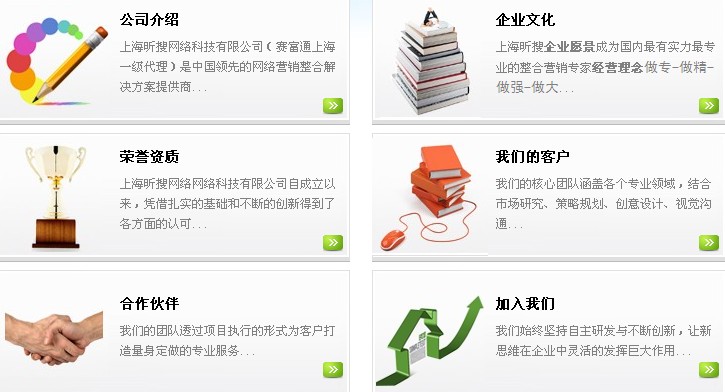 上海昕搜网络科技有限公司是中国领先的网络营销整合解决方案提供商,400电话4000886585。秉承帮助企业低成本获取高质量客户的经营理念,结合专业的网络营销思想并根据企业的规模及网络营销现状,设计出有针对性的整合营销方案,使得企业可以低成本,利用网络营销带来更多的销售线索。公司拥有丰富的管理经验、成熟的应用系统解决方案、优秀的开发工程师团队及专业的网站设计师团队,汇聚了领先的技术与平台资源等优势,有效实现搜索引擎+商贸网站双重传播的广告模式,更全面、快速、精准的帮助企业传播产品、公司等广告,快速实现共赢。